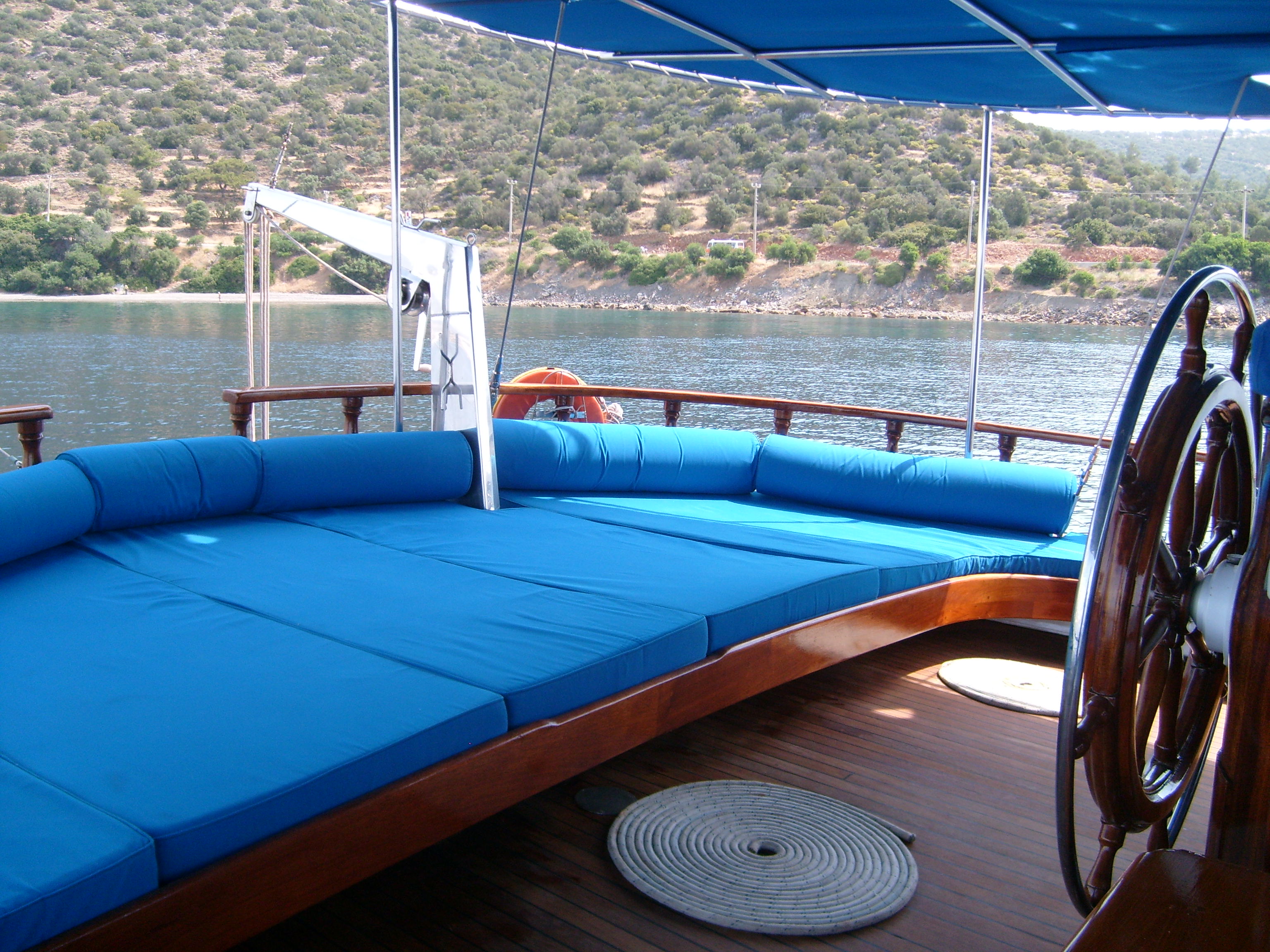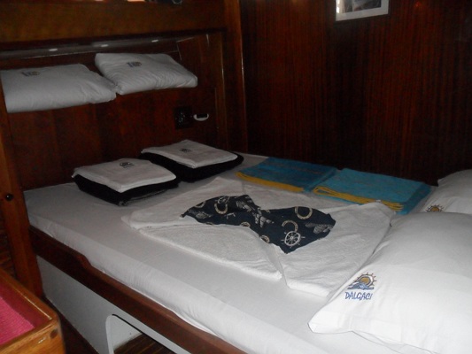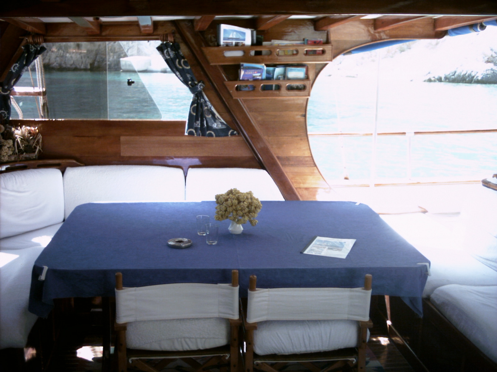 Our guests compare Dalgaci like a comfortable and fashioned floating hotel, she has four double and two single cabins each with its own bathroom to give a suitable accommodation for ten guests.