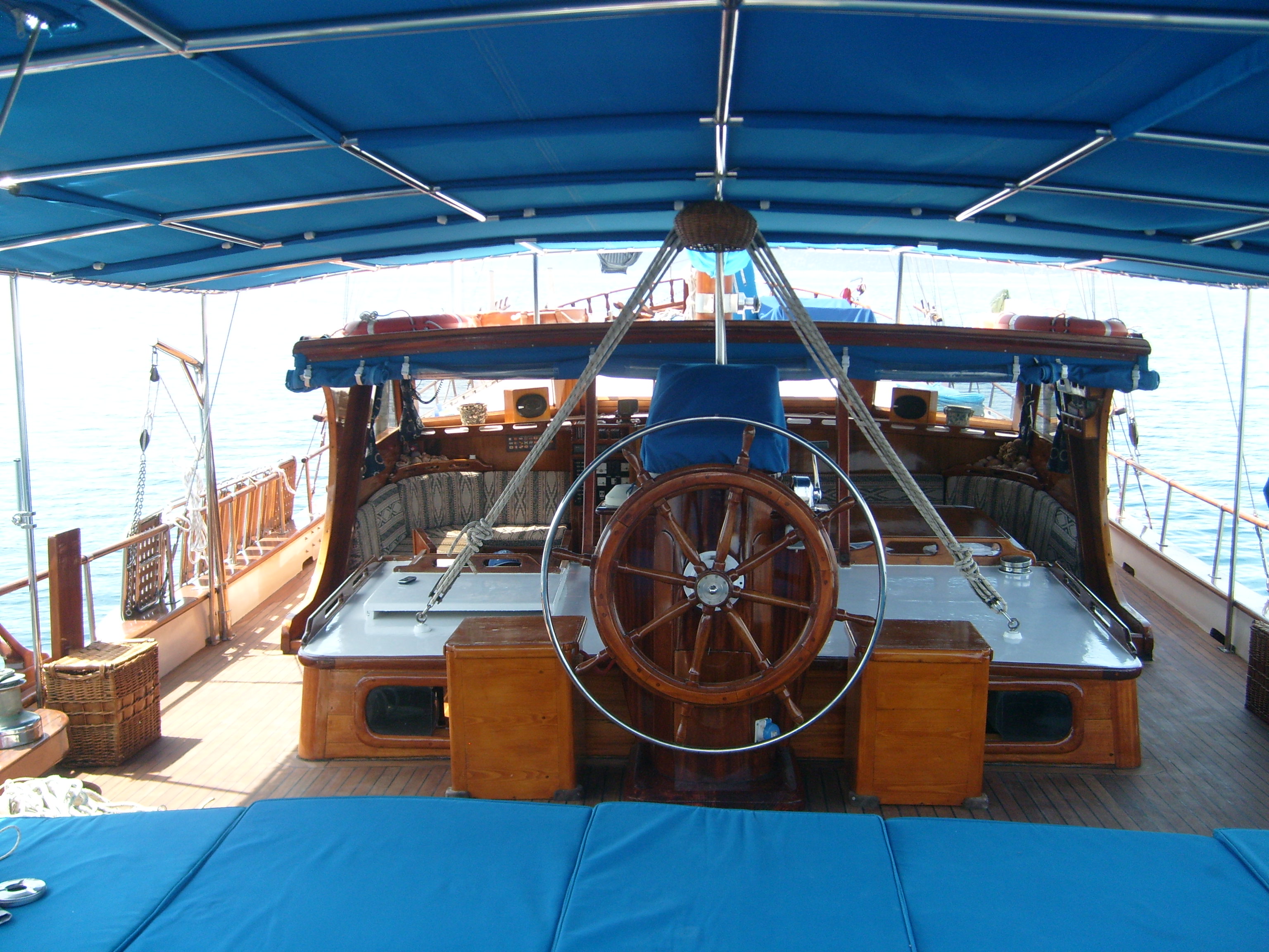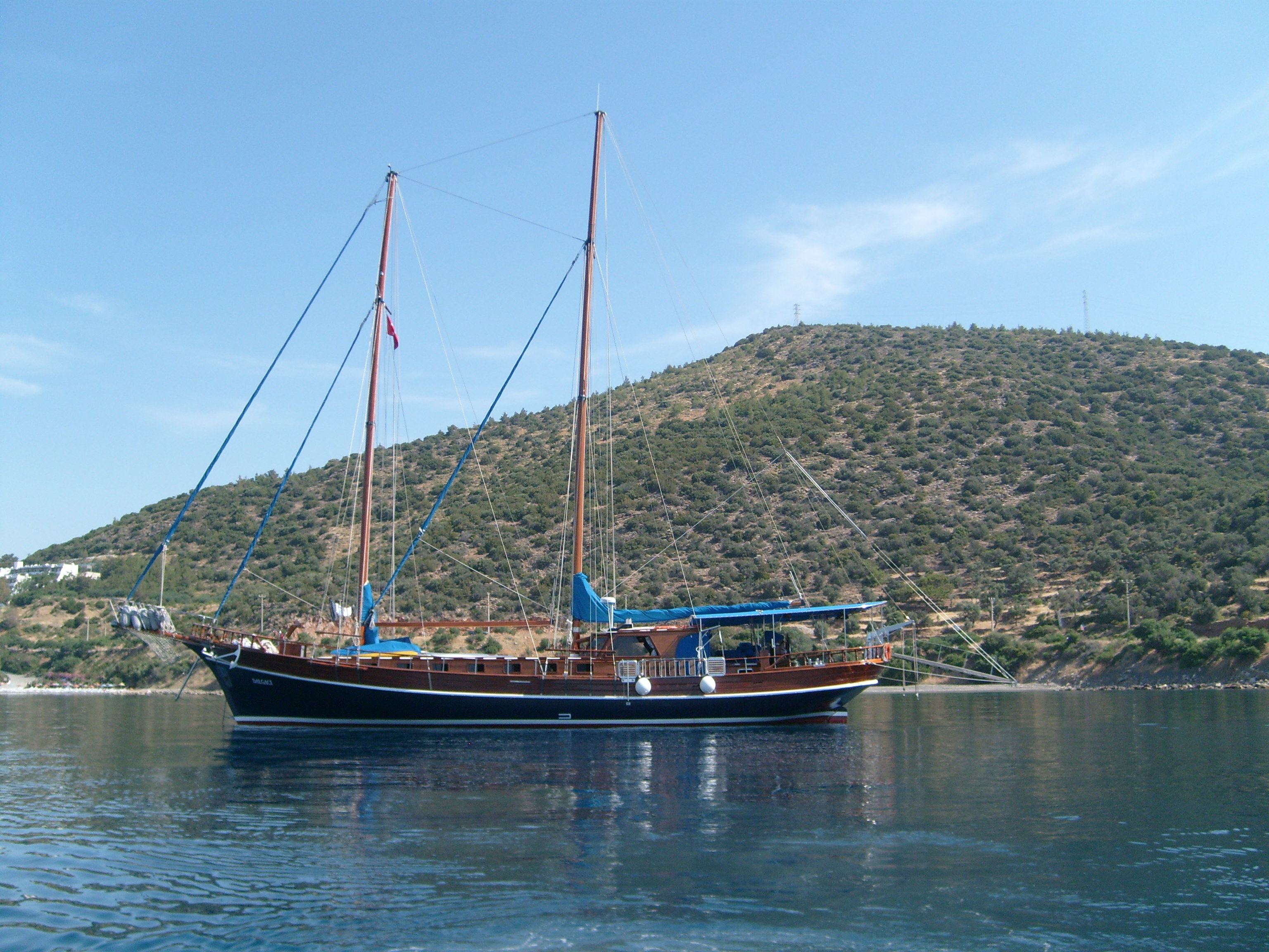 ACCOMMODATION: 6 Cabins with private WC/shower (4 Double bed, 2 single) all air-conditioned Separate crew quarter with WC/shower Fully equipped galley Decks with equipment for sitting and sunbathing SPECIFICATION: TYPE: Gullet YEAR: 1997 built in Bodrum L.O.A.: 23 m BEAM: 6.00 m DRAFT: 2.70 m ENGINE: 240 HP Man Marine Diesel POWER SUPPLY: 12 VDC - 220 V SAIL AREA: 310 Sqm EQUIPMENT ONBOARD: VHF Radio GPS Generator Air Condition Dinghy with outboard 9.9 HP YAMAHA Tv with DVD player, CD player, Canoe International safety regulations. |
